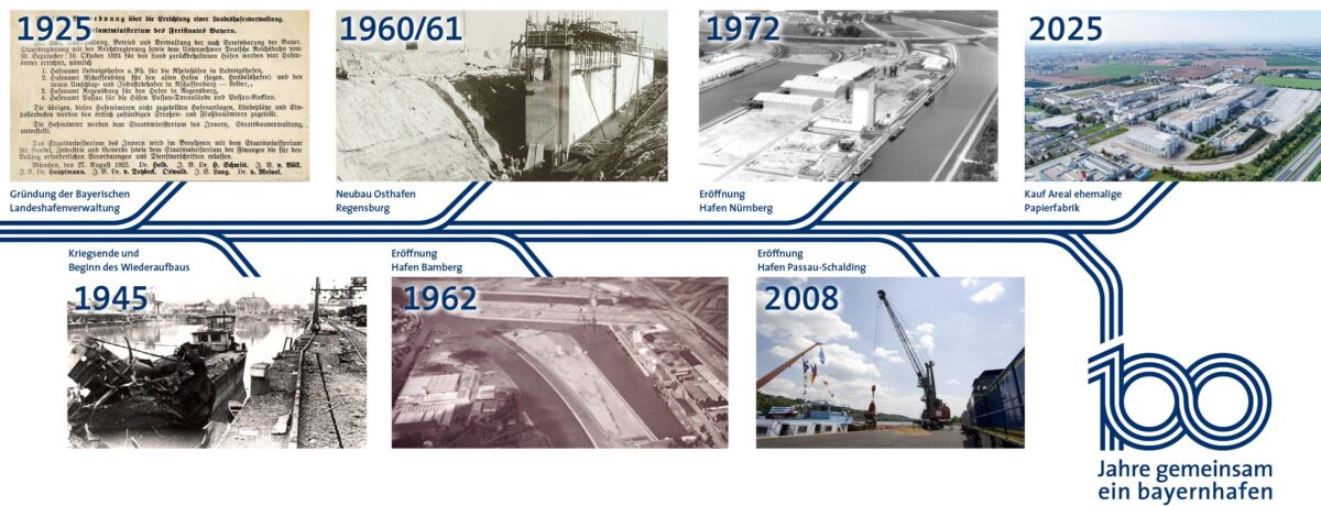 2025 feiert bayernhafen 100jähriges Jubiläum. Eine stolze Geschichte. Mit besten Aussichten für eine erfolgreiche Zukunft.