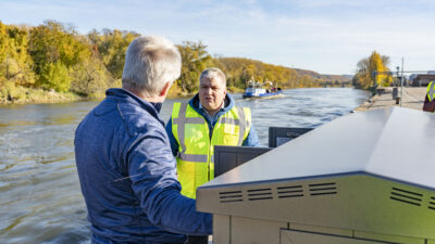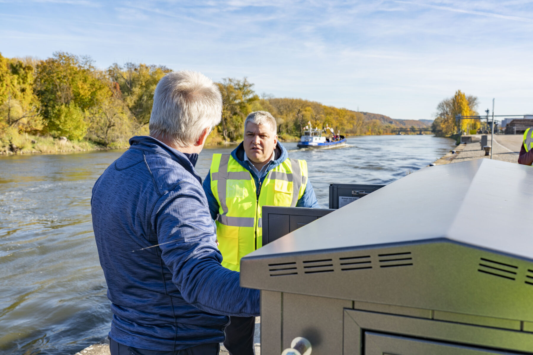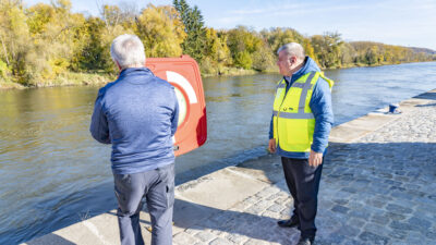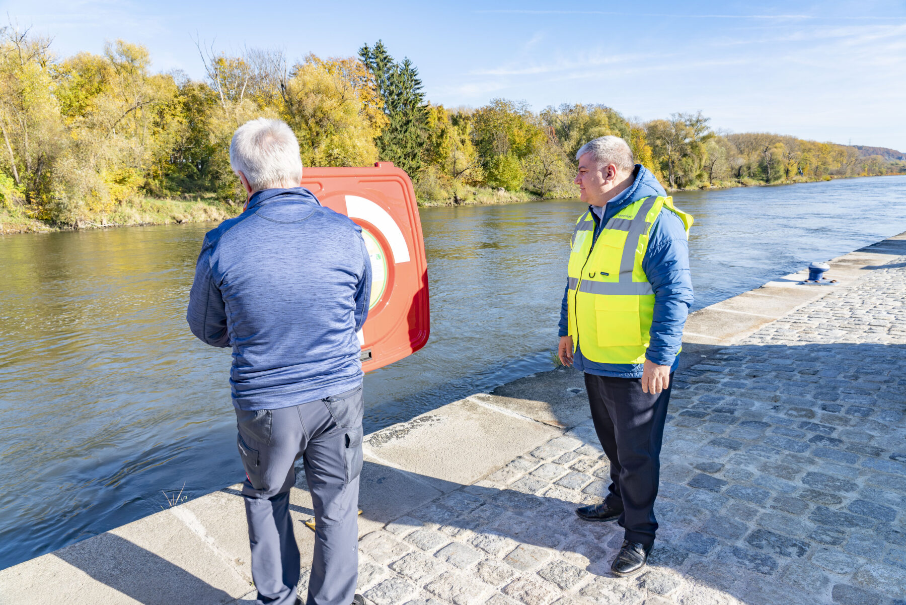 Zusammen mit dem Hafenmeister kontrollierte Schmidt die Ausweich-Anlegestelle für Flusskreuzfahrtschiffe an der Donaulände und informierte sich über dieses für die Stadt Regensburg wichtige Tourismussegment. Die Donaulände ist das älteste Areal des Hafens. In den vergangenen Jahren wurde die Donaulände von bayernhafen als „Pufferzone“ zwischen Altstadt und Hafengebiet, Wohnen und Logistik, neu strukturiert. Der östliche Bereich wird weiterhin für den Güterumschlag per Schiff und Bahn genutzt. Den westlichen ertüchtigte bayernhafen für die sogenannte Weiße Flotte. Dazu investierte bayernhafen unter anderem in eine Landstromanlage, gefördert durch das Bundesministerium für Wirtschaft und Klimaschutz und das Bayerische Staatsministerium für Wohnen, Bau und Verkehr. bayernhafen setzt sich seit Jahren für die Akzeptanz der Flusskreuzschifffahrt und wie diese verträglich für die Bevölkerung und die Umwelt gestaltet werden kann, ein – Themen, die auch die Schmidt in seiner politischen Arbeit im Ausschuss für Tourismus, beschäftigen.