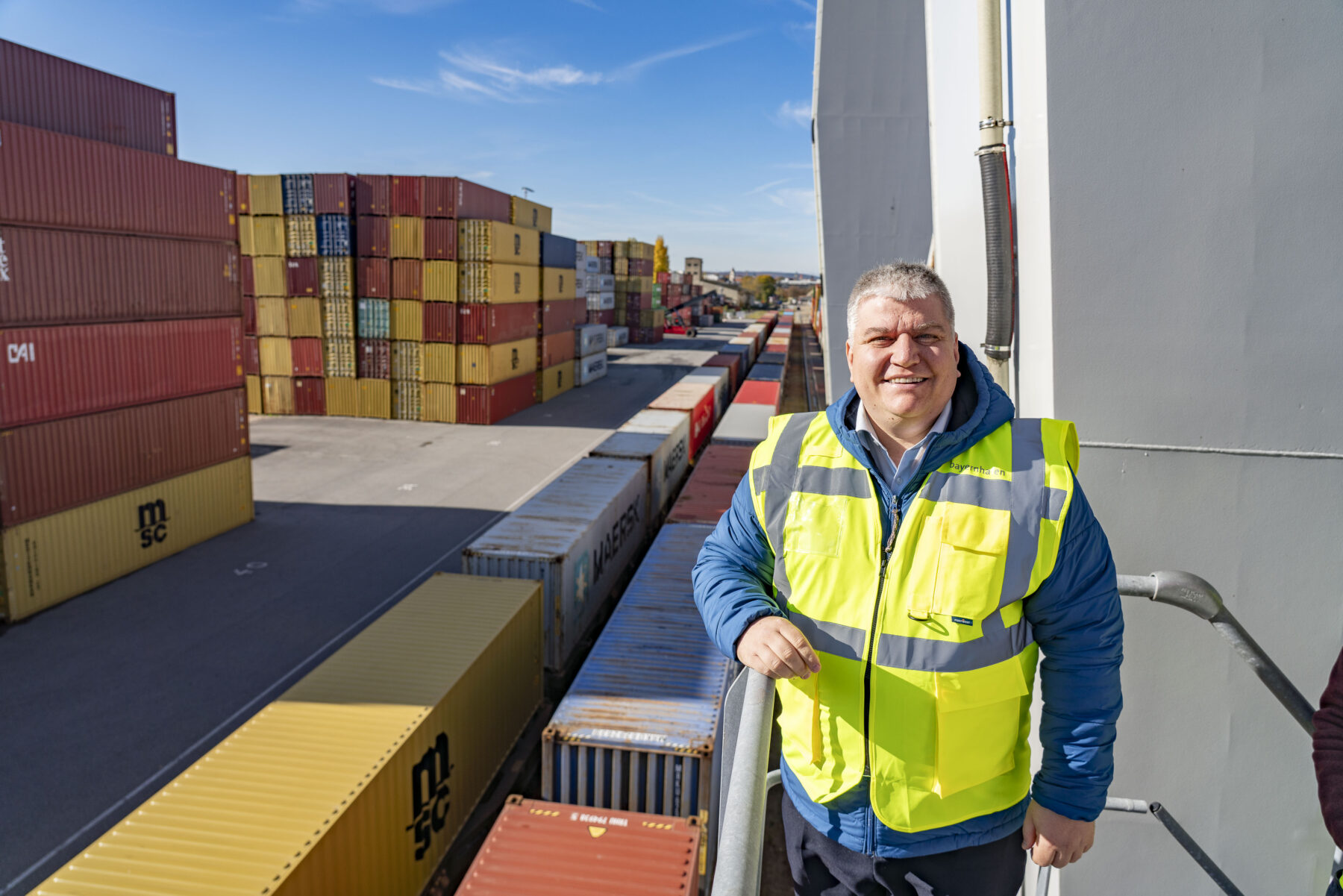 Bundestagsabgeordneter Stefan Schmidt absolviert Hafenpraktikum im bayernhafen Regensburg