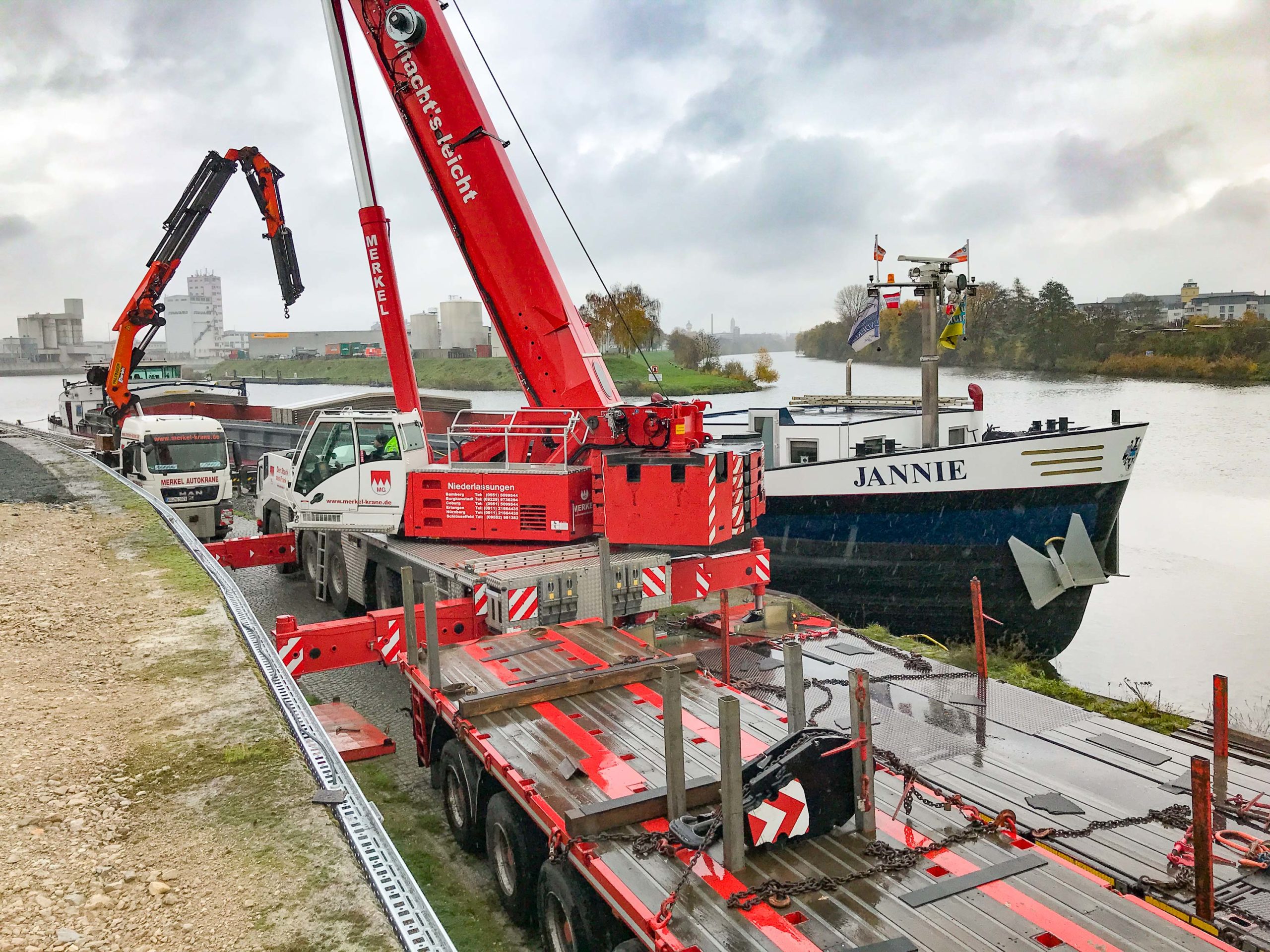 Viele starke Helfer beim Umschlag der Schleusentore im bayernhafen Bamberg: